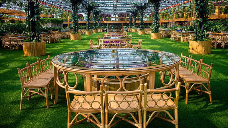 同時在餐廳的裝飾上面,也要注重裝飾物的自然性。由于溫室餐廳里面自然景觀、花草植物的布置特點,讓在飾物的選擇上需要同大自然自然的融匯到一體,可以多采用天然石材、木材為原料制成的產品或者一些農用物品。為了更好的凸顯整個餐廳的自然風格,在溫室餐廳桌椅的選擇上,也更多的偏向實木材質或者是天然石材材質的桌椅,能夠讓人們用餐的時候能夠更好的擁有接觸大自然的感覺。