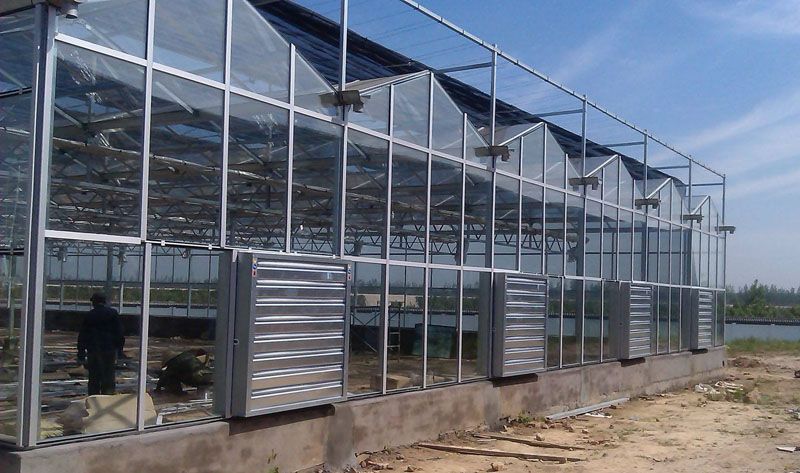 玻璃溫室通風(fēng)目的主要是為了排除溫室的余熱及溫室內(nèi)的水分, 調(diào)整溫室內(nèi)空氣成分, 排除有害氣體,使溫室內(nèi)的環(huán)境溫度、濕度和空氣等條件適宜植物生長(zhǎng)的要求。