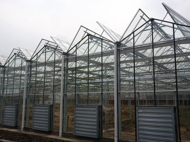 玻璃溫室通風目的主要是為了排除溫室的余熱及溫室內的水分, 調整溫室內空氣成分, 排除有害氣體,使溫室內的環境溫度、濕度和空氣等條件適宜植物生長的要求。